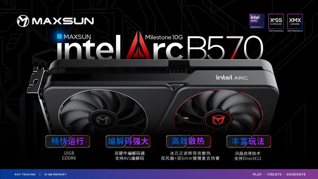 自銘瑄推出Intel Arc B580系列顯卡以來(lái),憑著卓越的性能與品質(zhì),收獲不少用戶好評(píng),成為不少游戲玩家和內(nèi)容創(chuàng)作者的熱門之選。今天,銘瑄正式推出全新MAXSUN Intel Arc B570 Milestone 10G顯卡,為廣大用戶提供更多元、具備性價(jià)比優(yōu)勢(shì)的選擇。