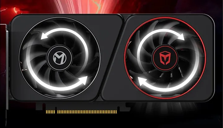 MAXSUN Intel Arc B570 Milestone 10G采用雙風(fēng)扇正逆轉(zhuǎn)導(dǎo)流散熱設(shè)計(jì),9CM FROST風(fēng)扇搭配11幅密集扇葉,風(fēng)扇旋轉(zhuǎn)方向不同,減少繞流,增加進(jìn)風(fēng)量,顯著提升散熱效能,讓顯卡在高負(fù)載下也時(shí)刻冷靜。在10分鐘烤機(jī)實(shí)測(cè)中,MAXSUN Intel Arc B570 Milestone 10G溫度低至65度。(*測(cè)試數(shù)據(jù)來(lái)源于銘瑄實(shí)驗(yàn)室,基于此配置進(jìn)行測(cè)試:Motherboard-MS-Terminator B760M D4 ICE;CPU-英特爾®酷睿™i7-13700K處理器;RAM-DDR4 4000 16-16-16-36,實(shí)際性能會(huì)因硬件配置、軟件環(huán)境等多方面差異而存在變化)